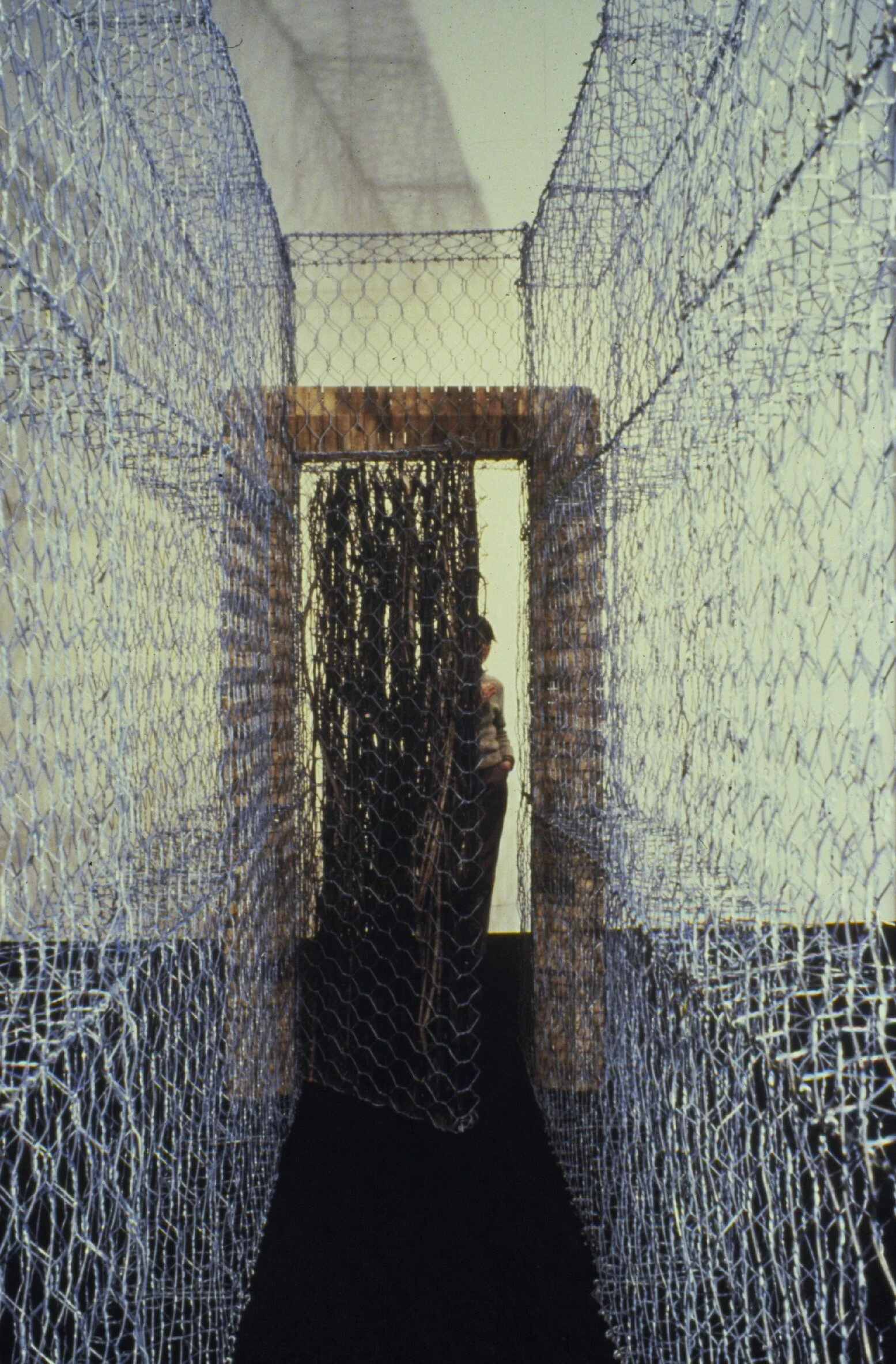 The Narrows. 7': 10': 20" 1980 Galvanized fencing, spinning metal house